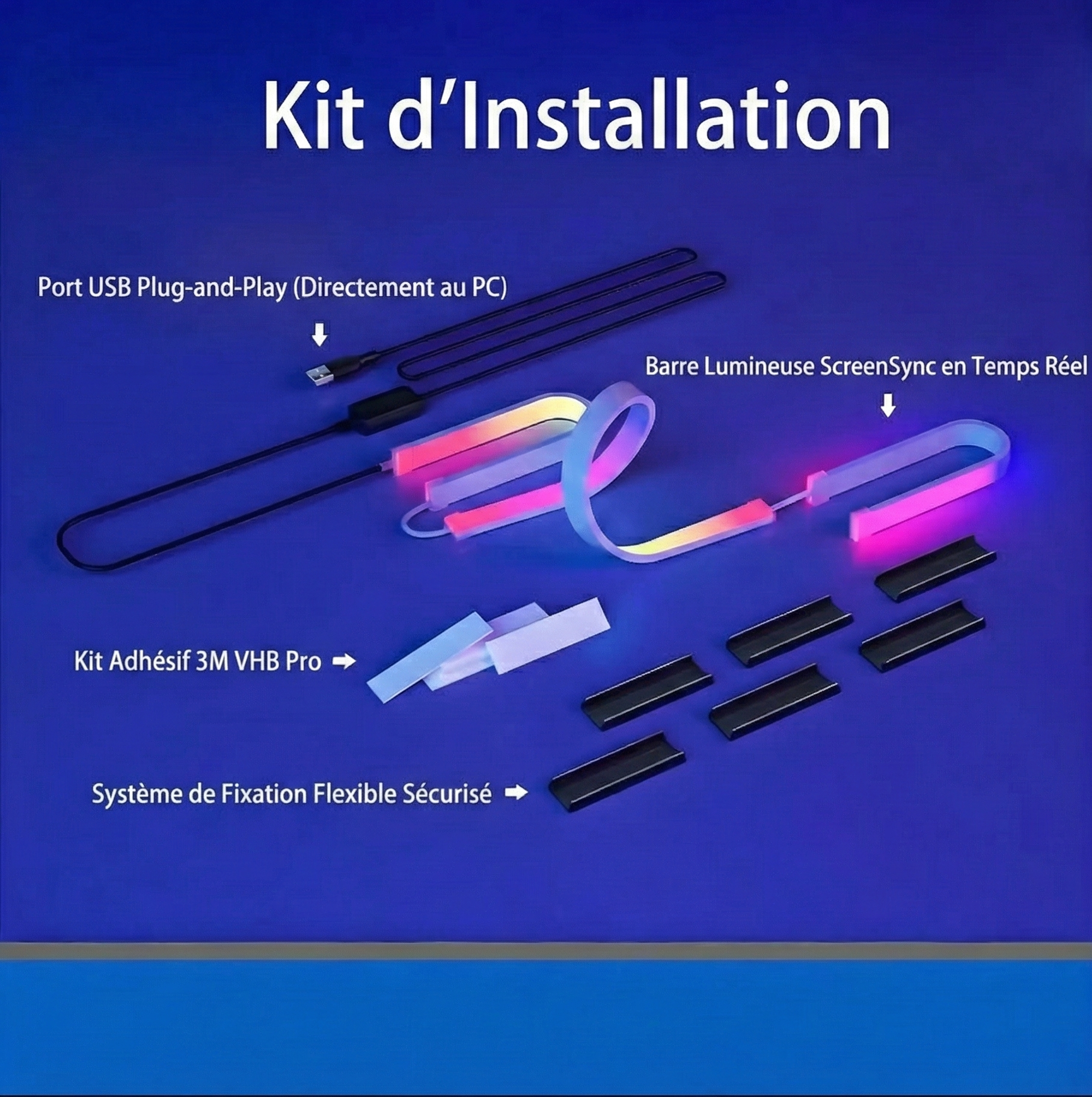 Transformez votre espace de travail avec ce ruban LED RGB synchronisé à votre écran. Conçu pour les gamers et créatifs, il crée une ambiance immersive en épousant les couleurs de votre contenu en temps réel. Installation simple derrière le moniteur, contrôle intuitif et palette de couleurs infinies pour personnaliser votre setup. Idéal pour les sessions gaming intensives, le streaming ou simplement améliorer l'atmosphère de votre bureau. Technologie Dream Color pour des transitions fluides et naturelles.
